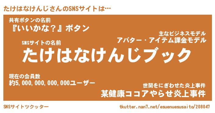 | 肩書あだ名 | 『たけはなけんじ社長』 |
