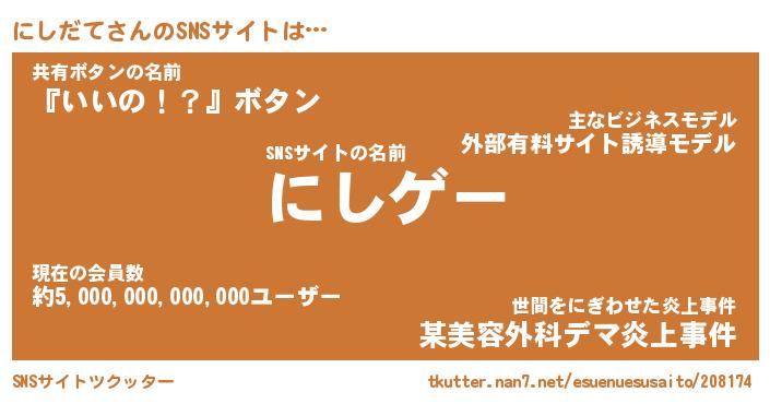 | ポケモン風あだ名 | 『ニシチュウ』『ニシダダネ』 |