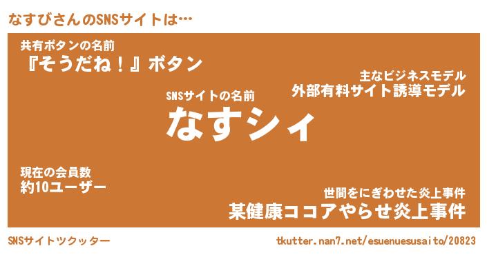 | 男性向けラノベタイトル風あだ名 | 『なすびの憂鬱』 |