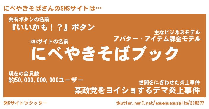 | 胡散臭い通販商品みたいなあだ名 | 『億万長者になれる水晶球…その名も「にべやきそば」』 |