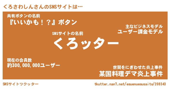 | 胡散臭い通販商品みたいなあだ名 | 『億万長者になれる霊験あらたかなお札…その名も「くろさわしん」』 |
