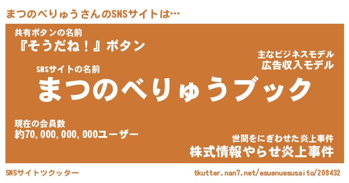 | 男性向けラノベタイトル風あだ名 | 『マツノベリュウアートオンライン』 |
