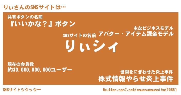 | 伝説のあだ名 | 『伝説の竜騎士りぃ』『最古の忍者りぃ』 |