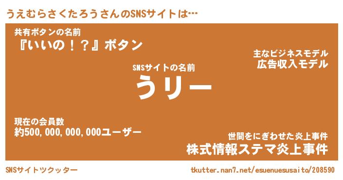 | 肩書あだ名 | 『うえむらさくたろう店長』 |