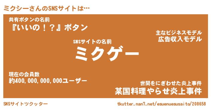 | 胡散臭い通販商品みたいなあだ名 | 『必ず成功するブレスレット…その名も「ミクシー」』 |