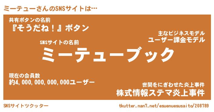| 胡散臭い通販商品みたいなあだ名 | 『億万長者になれるブレスレット…その名も「ミーテュー」』 |