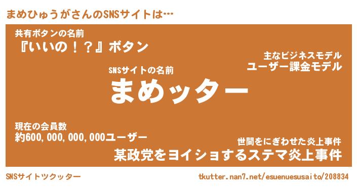 | 男性向けラノベタイトル風あだ名 | 『マメヒュウガアートオンライン』 |