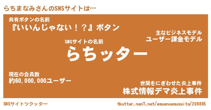 | 胡散臭い通販商品みたいなあだ名 | 『億万長者になれる水晶球…その名も「らちまなみ」』 |