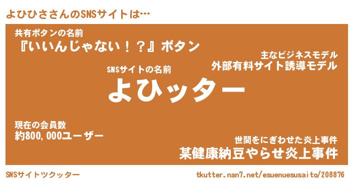 | ヘコむあだ名 | 『よひにゅー』『豆乳』『よひっぺ』 |
