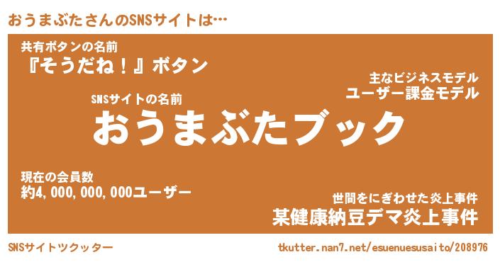 | 肩書あだ名 | 『おうまぶたCEO』『おうまぶた総理大臣』 |