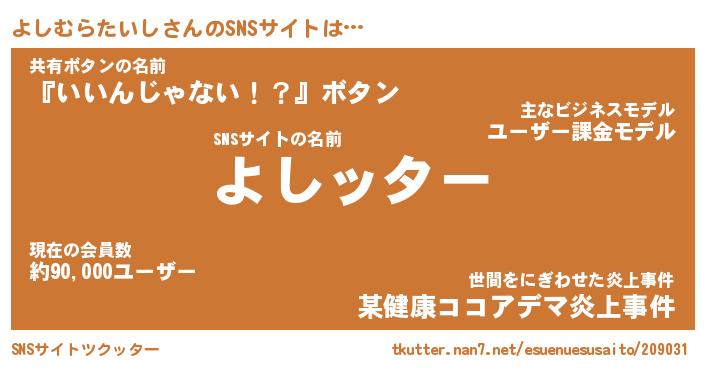 | 肩書あだ名 | 『よしむらたいし社長』 |