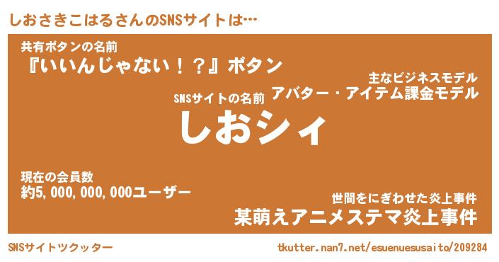 | 胡散臭い通販商品みたいなあだ名 | 『必ず成功する水晶球…その名も「しおさきこはる」』 |