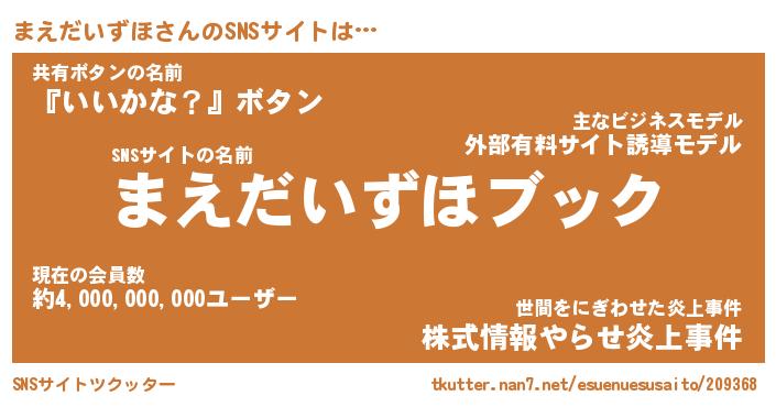 | ツイッター | まえだいずほさんのツイッターID『namakemono_star』 |