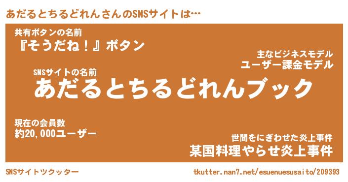 | 胡散臭い通販商品みたいなあだ名 | 『億万長者になれるブレスレット…その名も「あだるとちるどれん」』 |