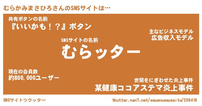 | 肩書あだ名 | 『むらかみまさひろ社長』 |
