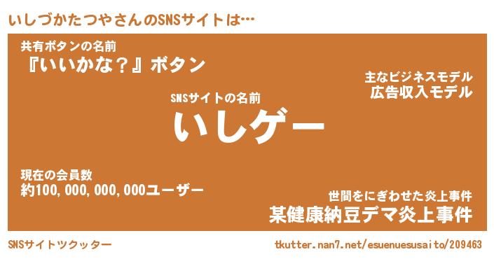 | 肩書あだ名 | 『いしづかたつや店長』 |