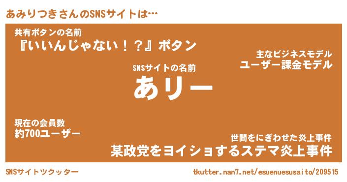 | 肩書あだ名 | 『あみりつき社長』『あみりつき総理大臣』 |