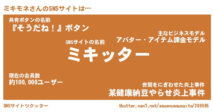 | 意味不明あだ名 | 『ペロリンミキモネ』『永久保存ミキモネ』 |