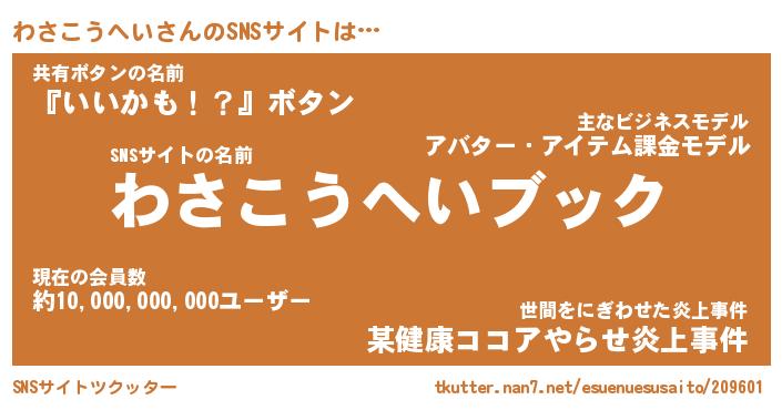 | 伝説のあだ名 | 『封印されし竜騎士わさこうへい』 |