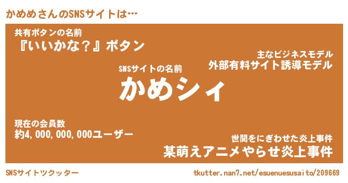 | ヘコむあだ名 | 『かめもー』『なまこ酢』『かめっぺ』 |