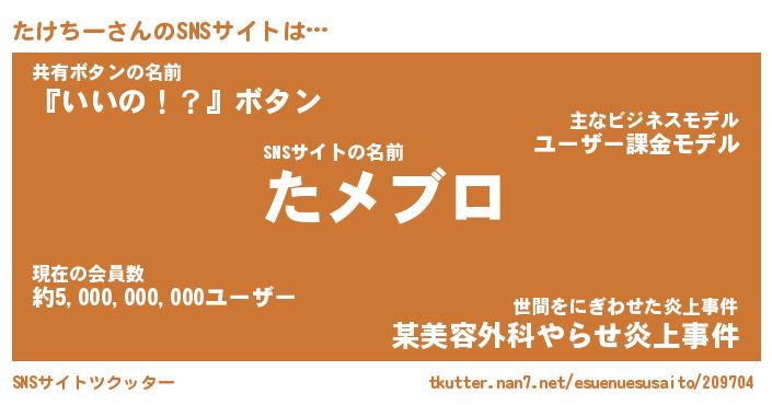 | 意味不明あだ名 | 『ペロリンたけちー』『永久保存たけちー』 |