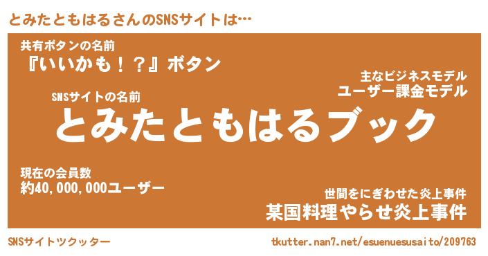 | 男性向けラノベタイトル風あだ名 | 『トミタトモハルアートオンライン』 |