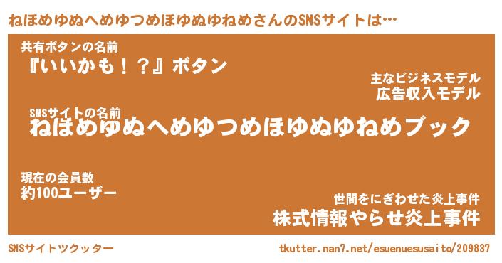 | 胡散臭い通販商品みたいなあだ名 | 『億万長者になれるブレスレット…その名も「ねほめゆぬへめゆつめほゆぬゆねめ」』 |