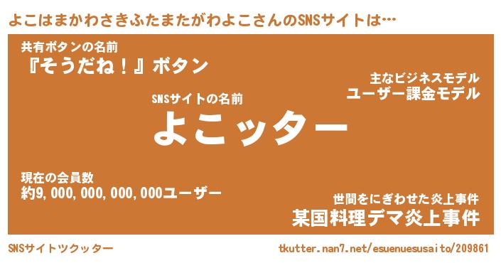 | 胡散臭い通販商品みたいなあだ名 | 『億万長者になれる水晶球…その名も「よこはまかわさきふたまたがわよこ」』 |