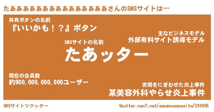 | 胡散臭い通販商品みたいなあだ名 | 『億万長者になれるブレスレット…その名も「たあああああああああああああああ」』 |
