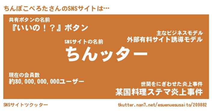 | 胡散臭い通販商品みたいなあだ名 | 『億万長者になれるブレスレット…その名も「ちんぽこぺろた」』 |