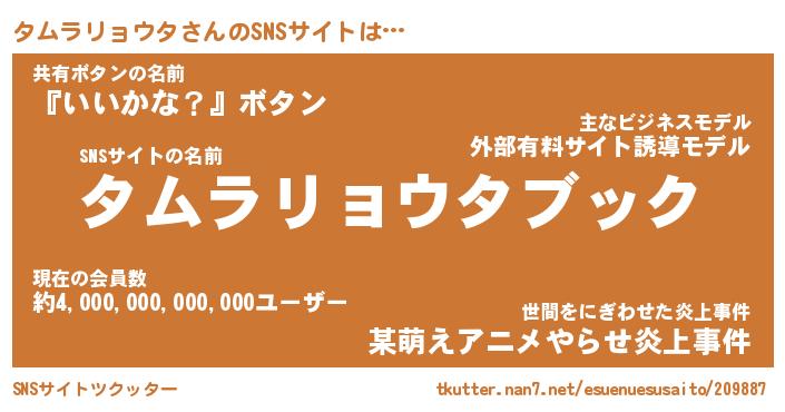 | 肩書あだ名 | 『タムラリョウタ社長』 |
