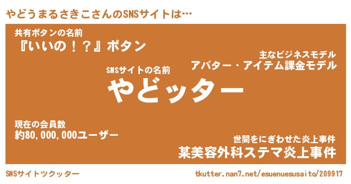 | 胡散臭い通販商品みたいなあだ名 | 『億万長者になれるブレスレット…その名も「やどうまるさきこ」』 |