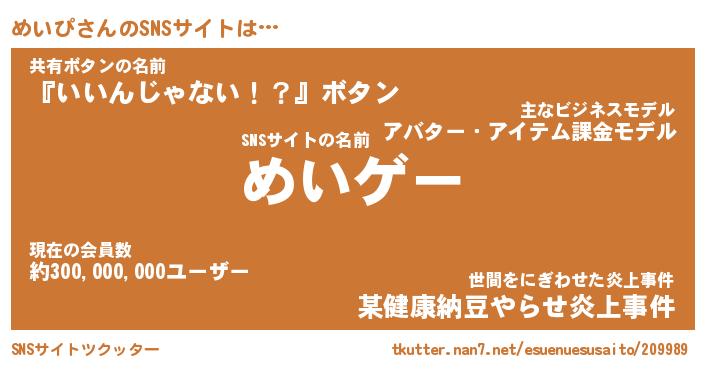 | 伝説のあだ名 | 『伝説の傭兵めいぴ』『最古の忍者めいぴ』 |