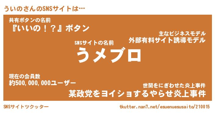 | ツイッター | ういのさんのツイッターID『katatsumuri_idle』 |