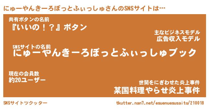 | 胡散臭い通販商品みたいなあだ名 | 『億万長者になれる霊験あらたかなお札…その名も「にゅーやんきーろぼっとふぃっしゅ」』 |