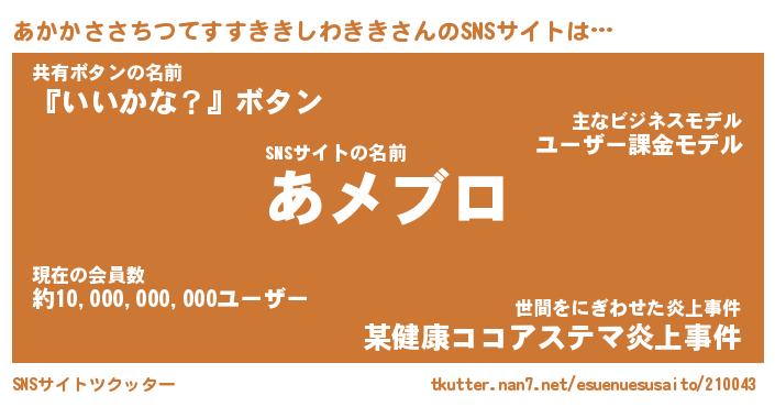 | ヒーロー風カッコイイあだ名 | 『スーパーアカカササチツテススキキシワキキ』 |