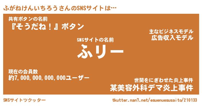 | 胡散臭い通販商品みたいなあだ名 | 『モテモテ間違いなし霊験あらたかなお札…その名も「ふがねけんいちろう」』 |