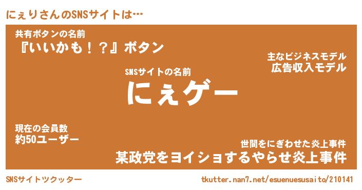 | ヘコむあだ名 | 『にぇにー』『牛乳』『にぇ太郎』 |