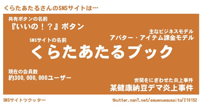 | 胡散臭い通販商品みたいなあだ名 | 『億万長者になれる霊験あらたかなお札…その名も「くらたあたる」』 |