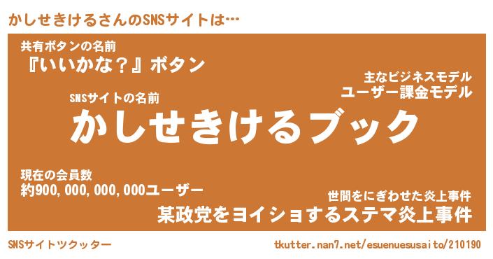 | 男性向けラノベタイトル風あだ名 | 『カシセキケルアートオンライン』 |
