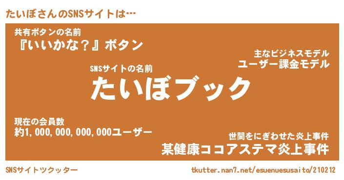 | 男性向けラノベタイトル風あだ名 | 『タイボアートオンライン』 |