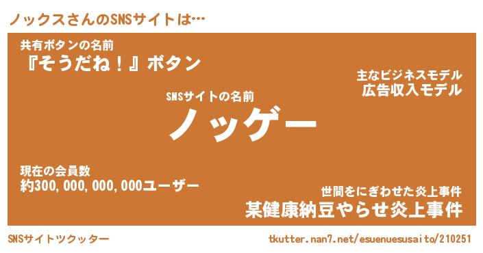 | 意味不明あだ名 | 『ペロリンノックス』『永久保存ノックス』 |