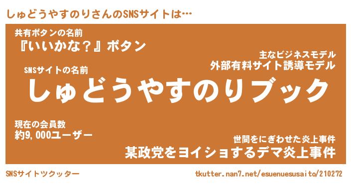 | 肩書あだ名 | 『しゅどうやすのりCEO』 |