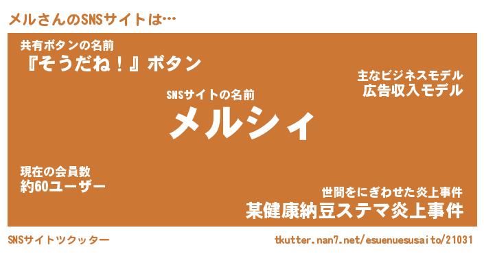 | 男性向けラノベタイトル風あだ名 | 『メルの憂鬱』 |