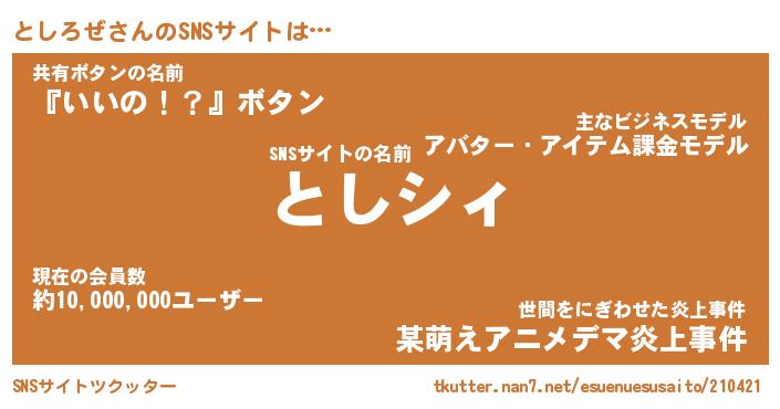 | ヒーロー風カッコイイあだ名 | 『スーパートシロゼ』『天弓騎士トシ』 |