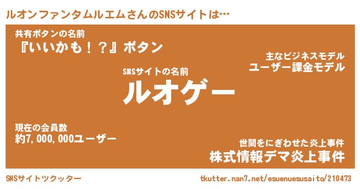 | ヘコむあだ名 | 『ルオふぇ~』『なまこ酢』『ルオお』 |
