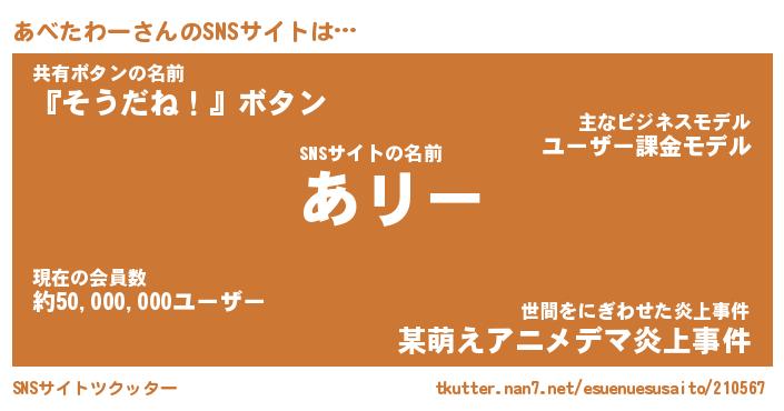 | 男性向けラノベタイトル風あだ名 | 『あべたわーの憂鬱』 |
