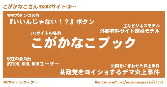 | 肩書あだ名 | 『こがかなこ店長』『こがかなこ大統領』 |