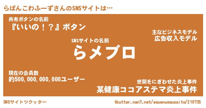 | ツイッター | らぱんこわふーずさんのツイッターID『dendenmushi_idle』 |