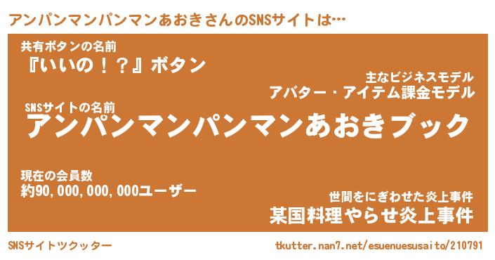 | ツイッター | アンパンマンパンマンあおきさんのツイッターID『dendenmushi_kun』 |